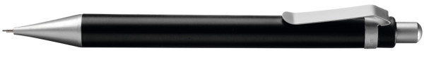 Druckbleistift (0,7mm) mit transparent gefrostetem oder gedecktem Gehäuse. Metalldrücker, Metallclip und Metallspitze matt verchromt.