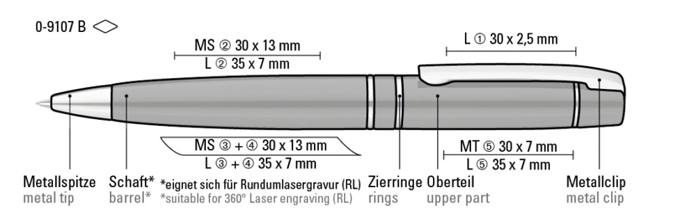 Metall-Drehbleistift (0,7mm) mit gefedertem Clip. Beschlagteile glanzverchromt. mehr