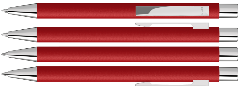 Metall-Druckbleistift (0,7mm) mit mattem Gehäuse. Metallclip, Metallspitze und Drücker silber glänzend. Radiergummi im Drücker.