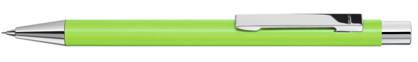 Metall-Druckbleistift (0,7mm) mit mattem Gehäuse. Metallclip, Metallspitze und Drücker silber... mehr