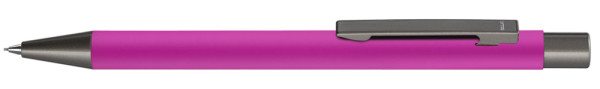 Metall-Druckbleistift (0,7mm) mit Softtouch-Gehäuse. Metallclip, Metallspitze und Drücker GUN metallic. Radiergummi im Drücker.