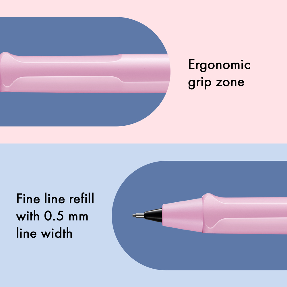 Der LAMY safari ist mehr als die Summe seiner Details: Er ist ästhetisch, robust und individuell. Der markante, selbstfedernde Clip hält das Schreibgerät sicher an Ort und Stelle befestigt. Das Gehäuse aus schlagzähem Kunststoff macht ihn zum robusten Begleiter in jedem Umfeld und die abgeflachte Form verhindert versehentliches Wegrollen. Funktionale Details wie subtil ergonomisch geformte Griffflächen und ein Sichtfenster zur Kontrolle des Tintenstands fügen sich wie selbstverständlich in das Design ein und machen den LAMY safari zum modernen Klassiker. Aus robustem ABS-Kunststoff, griffsympathisch durch markante Griffmulden, mit verchromtem, selbstfederndem Metallclip
