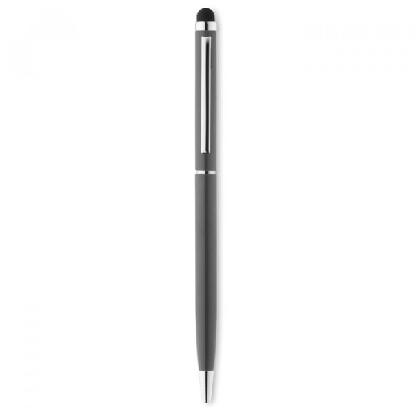 Drehkugelschreiber mit Stylus aus recyceltem Aluminium. Mit verchromtem Clip. Blaue Tinte.