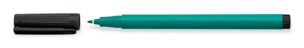 Fineliner mit stabiler, eindrucksicherer Spitze, DRY SAFE - kann tagelang offen liegen ohne einzutrocknen, leicht auswaschbar aus den meisten Textilien, Strichbreite F (fein, ca. 0,6 mm), Schaft in Tintenfarbe, Schoner und Abschlusskappe schwarz, Gehäuse aus 97 % recyceltem Plastik, Made in Germany