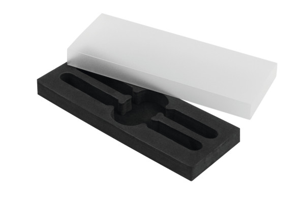 Etui mit EVA-Einlage für 2 Schreibgeräte mit transparent gefrostetem Kunststoffschuber. mehr
