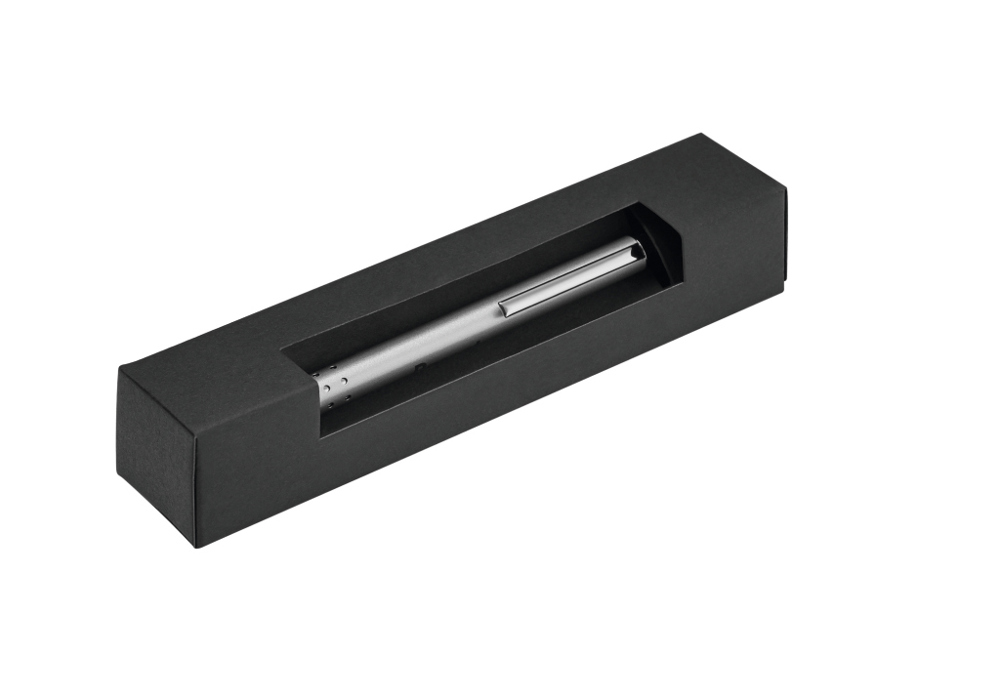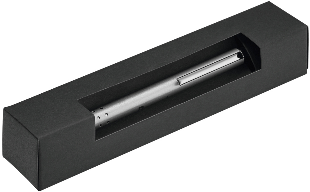 Pappstecketui in schwarz mit offenem Sichtfenster auf das Schreibgerät. mehr