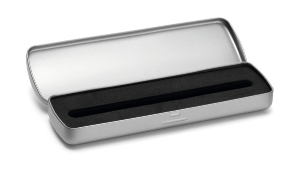 Metall-Klappetui in silber für ein oder zwei Schreibgeräte.