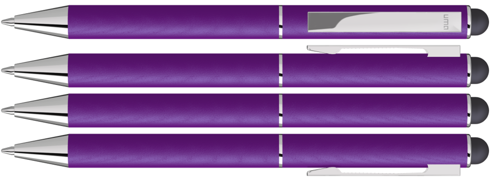 Metall-Drehkugelschreiber mit mattem Gehäuse. Metallclip und Metallspitze silber glänzend. Gummiertes Schaftende für die Touchscreensteuerung.
