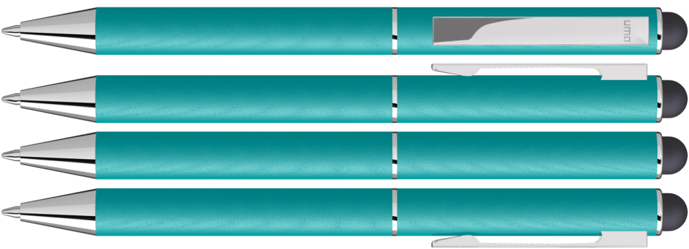 Metall-Drehkugelschreiber mit mattem Gehäuse. Metallclip und Metallspitze silber glänzend. Gummiertes Schaftende für die Touchscreensteuerung.