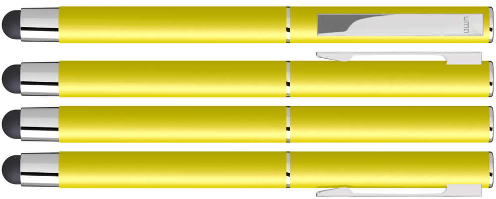 Metall-Rollerball mit mattem Gehäuse. Metallclip und Zierring silber glänzend, Griffzone schwarz. Gummiertes Schaftende für die Touchscreensteuerung.
