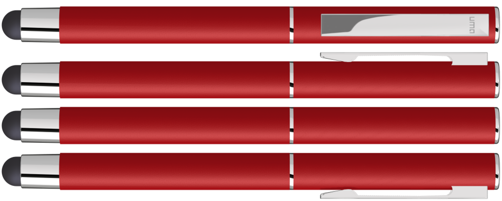 Metall-Rollerball mit mattem Gehäuse. Metallclip und Zierring silber glänzend, Griffzone schwarz. Gummiertes Schaftende für die Touchscreensteuerung.
