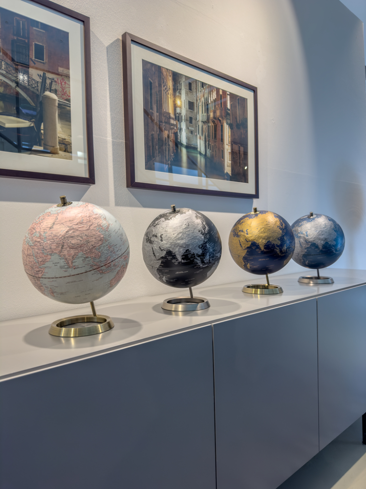 Globus mit 25 cm Durchmesser, verchromter Metallfuß in gebürsteter Optik, 23,5 Grad Neigung an... mehr