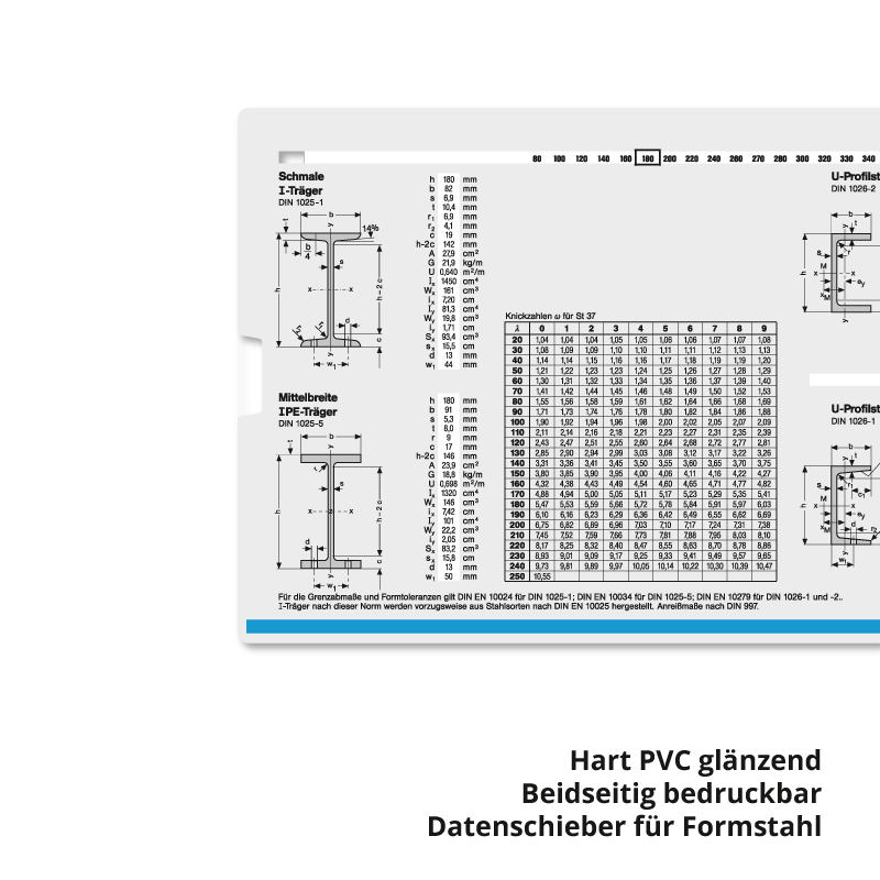 Dieser Datenschieber dient zur schnellen Gewichtsermittlung von Trägerprofilen und U-Profilen im... mehr