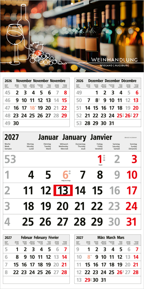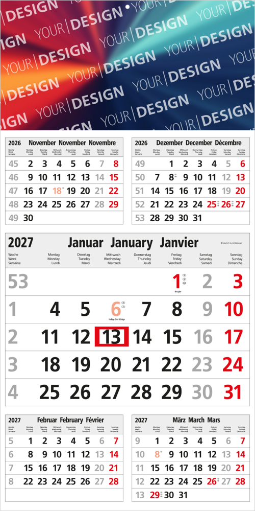 • Kalendarium: Deutsch 3sprachig D/GB/F hellgrau