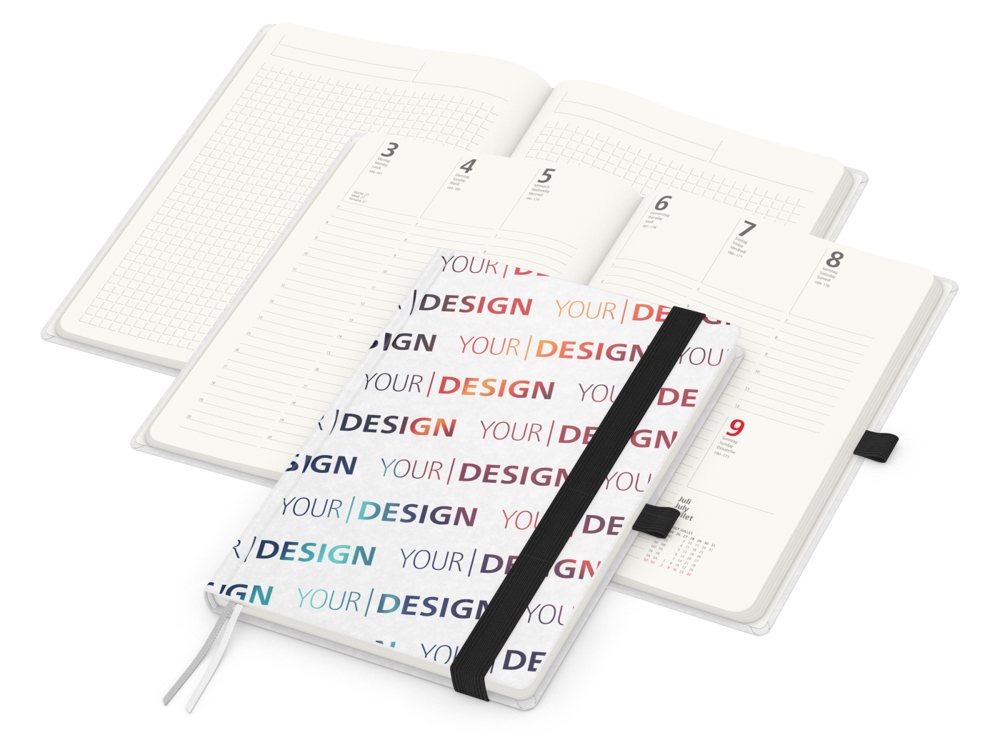 • Umfang: 192 Seiten plus Einstecktasche; 128 Seiten Kalendarium; 64 Seiten Notizen
