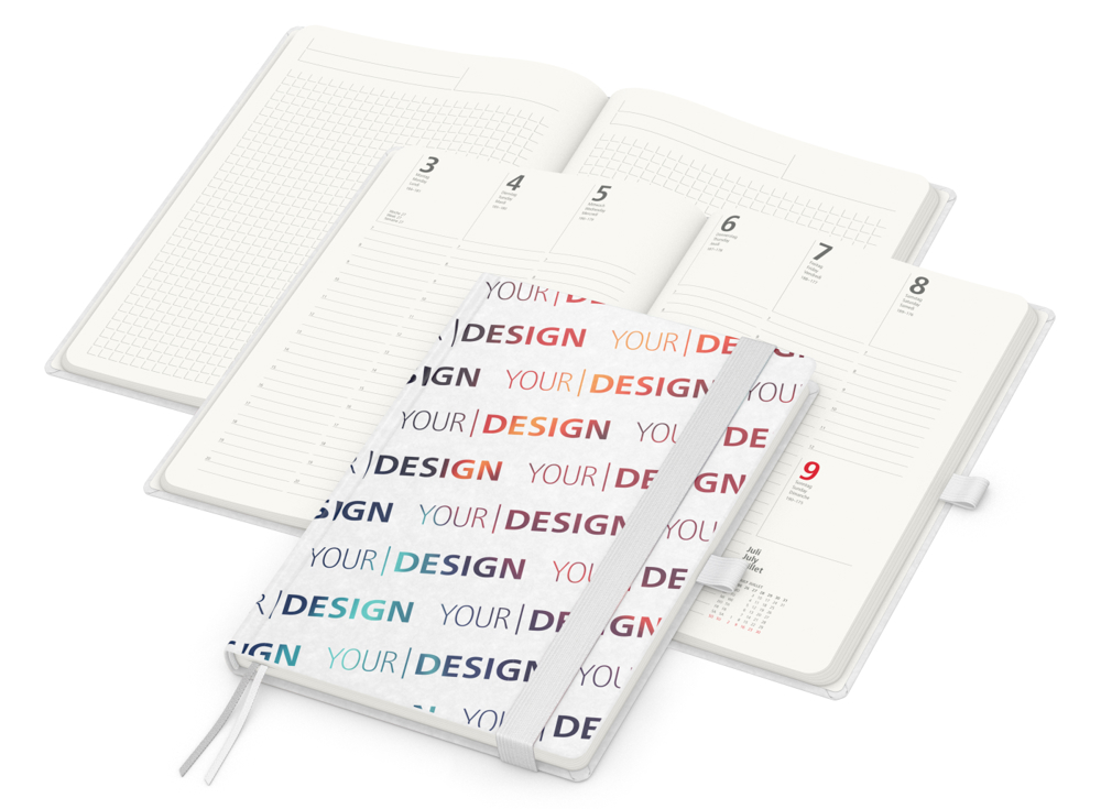 • Umfang: 192 Seiten plus Einstecktasche; 128 Seiten Kalendarium; 64 Seiten Notizen