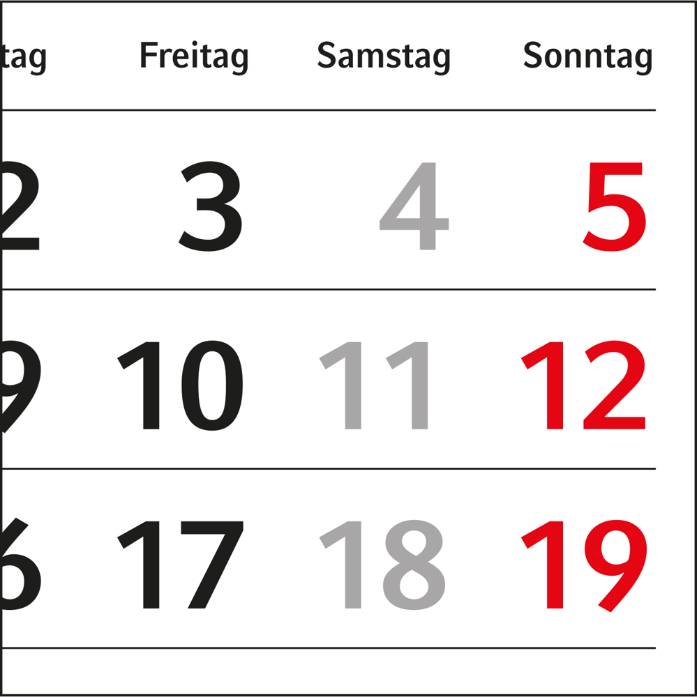 • Umfang: transparentes Foliendeckblatt; Titelblatt; 12 Monatsblätter; weiße Aufsteller-Rückwand