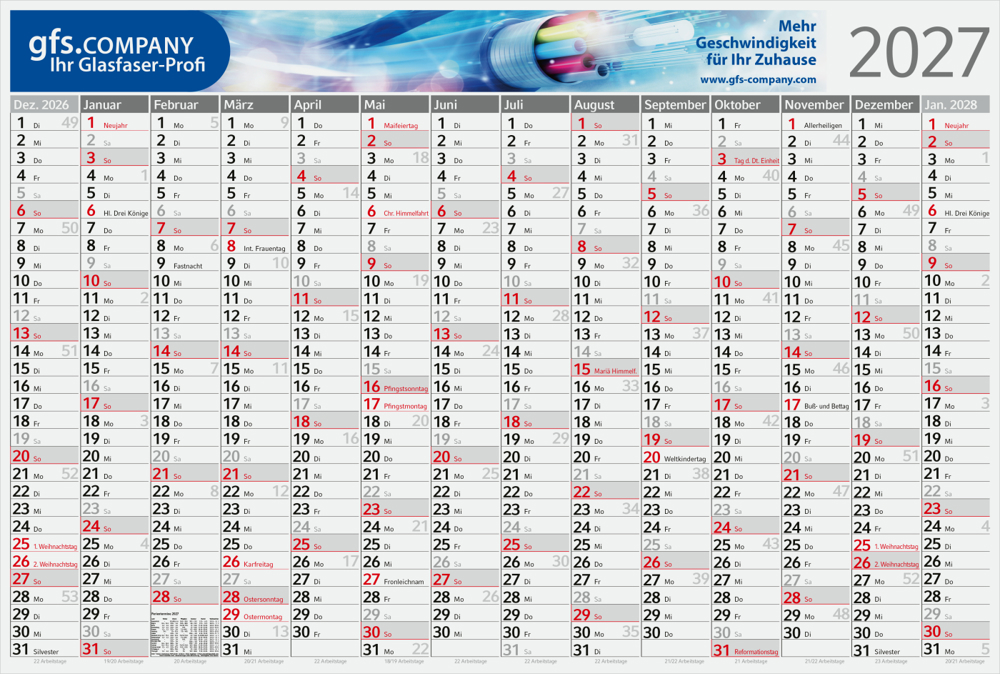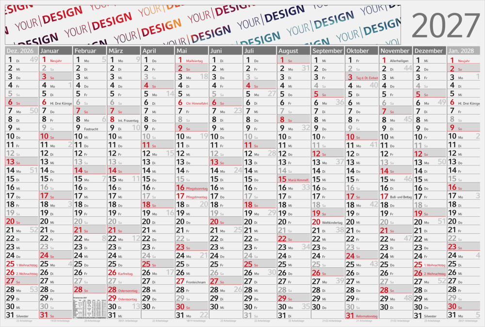 • Kalendarium: Deutsch 1sprachig; 14 Monate: Dez. – Jan.; Jahreszahl (anthrazit)