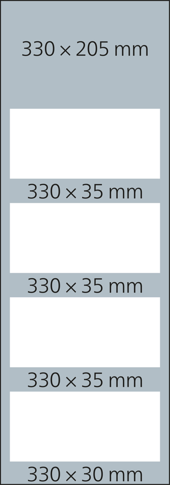 • Format: 330 × 900 mm gesamt; 300 × 140 mm je Kalenderblock