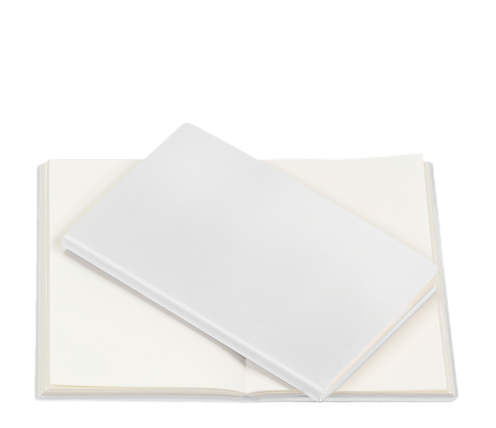Kompaktes Notizbuch mit handlichen Format 9 x 14 cm, 48 Seiten. Softiger PU-Einband weiß.