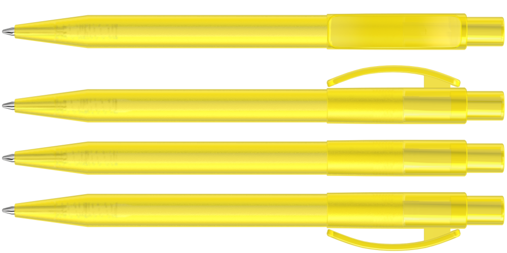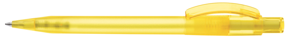 Druckkugelschreiber mit gefrostetem Gehäuse, glänzend transparentem Bogenclip und Drücker. mehr