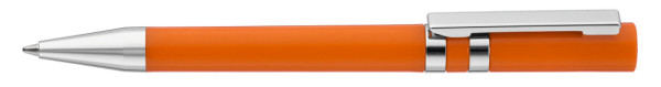 Drehkugelschreiber mit gedeckt glänzendem Gehäuse. Eingelassene Ringe, Stopfen im Oberteil,... mehr