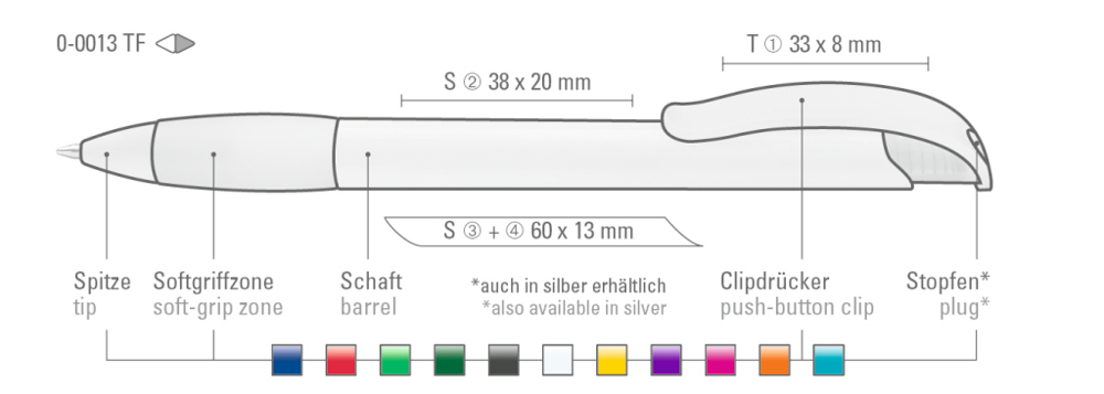 Druckkugelschreiber mit transparent gefrostetem Gehäuse, Gummigriffzone und Clipdrücker mit Stopfen. mehr