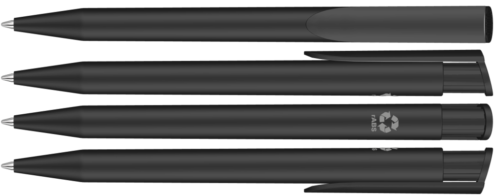 Druckkugelschreiber mit gedeckt mattem Gehäuse und Clipdrücker aus recyceltem Kunststoff. mehr
