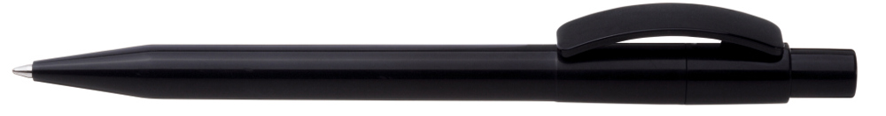 Druckkugelschreiber mit gedeckt glänzendem Gehäuse, Bogenclip und Drücker.