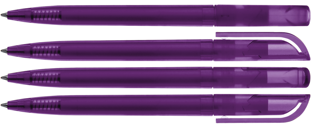 Drehkugelschreiber mit transparent gefrostetem Gehäuse.