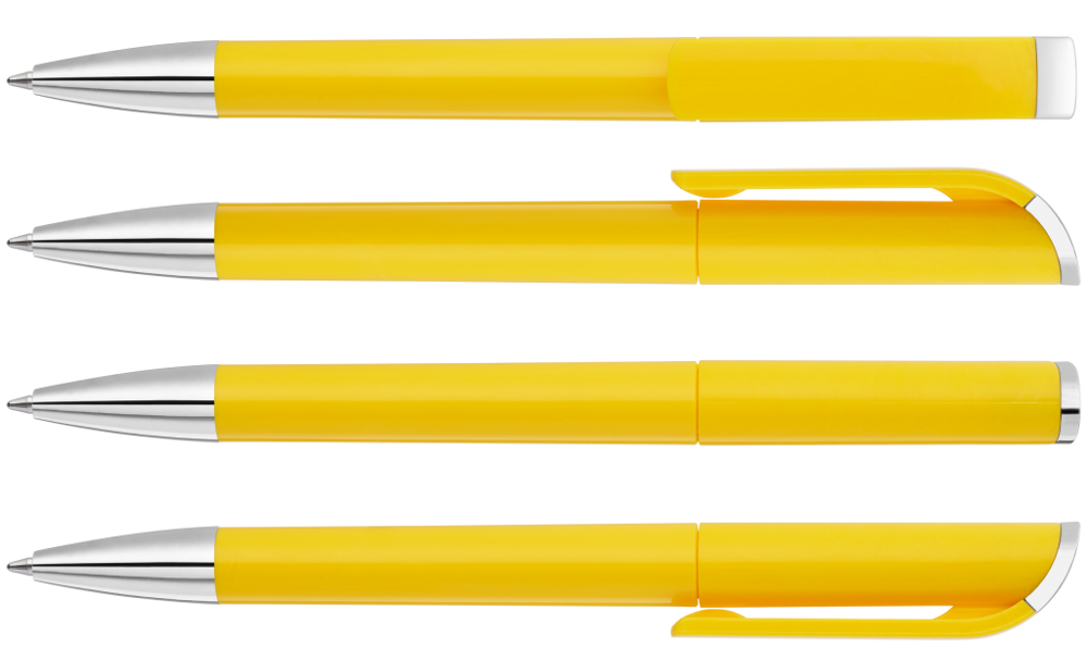 Drehkugelschreiber mit gedeckt glänzendem Gehäuse, Stopfen und Spitze glanzverchromt. mehr