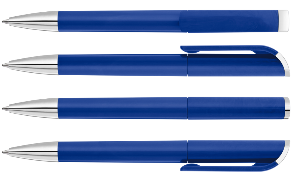 Drehkugelschreiber mit gedeckt glänzendem Gehäuse, Stopfen und Spitze glanzverchromt. mehr