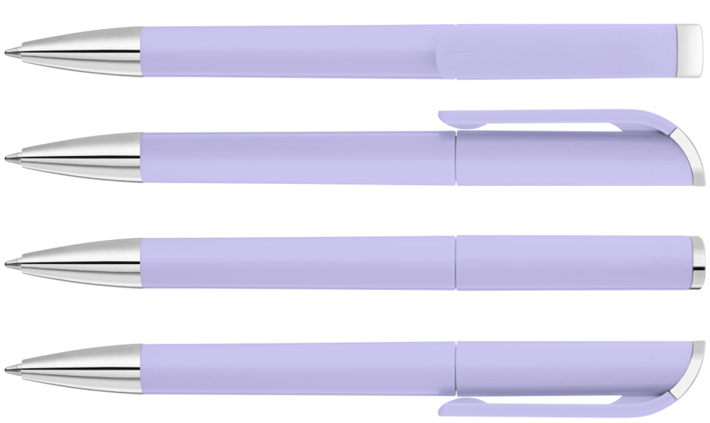 Drehkugelschreiber mit gedeckt glänzendem Gehäuse, Stopfen und Spitze glanzverchromt. mehr