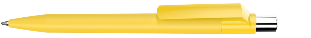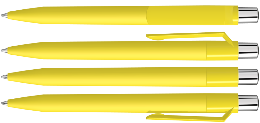 Druckkugelschreiber mit Softtouch-Schaft, gedeckt glänzendem Clip, silber glänzendem Drücker und farbigem Stopfen.