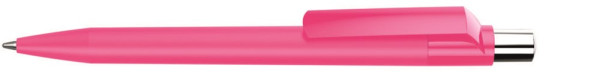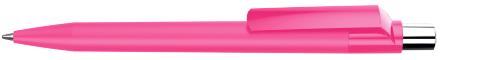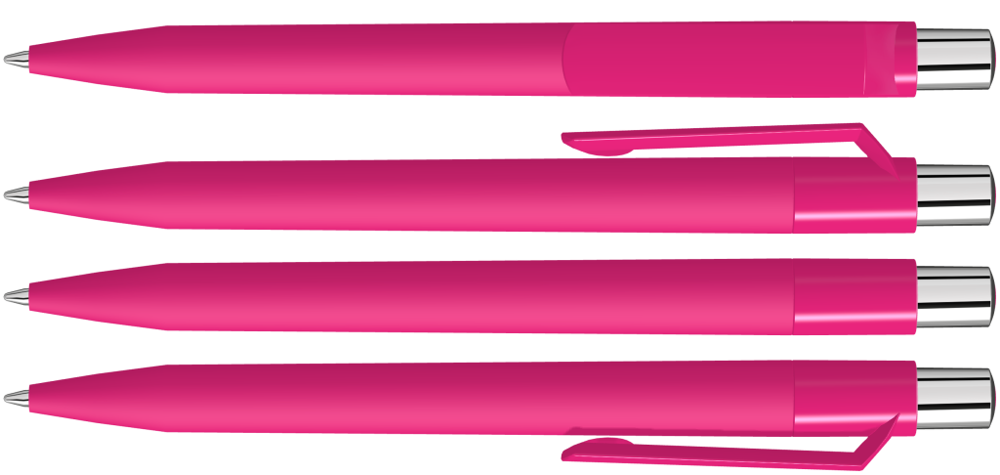 Druckkugelschreiber mit Softtouch-Schaft, gedeckt glänzendem Clip, silber glänzendem Drücker und farbigem Stopfen.