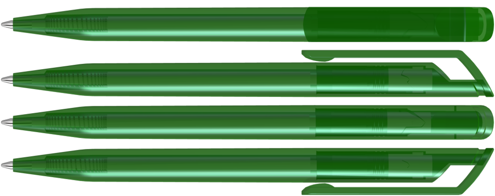 Drehkugelschreiber mit transparent glänzendem Gehäuse.