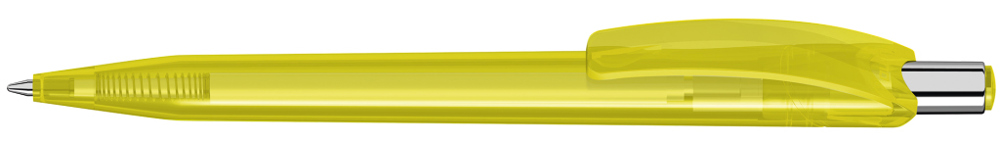 Druckkugelschreiber mit glänzend transparentem Gehäuse und Drückerstopfen. Drücker in silber glänzend.