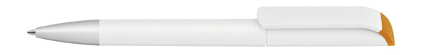 Drehkugelschreiber mit gedeckt mattem Gehäuse in weiß, farbig glänzendem Stopfen und Spitze... mehr