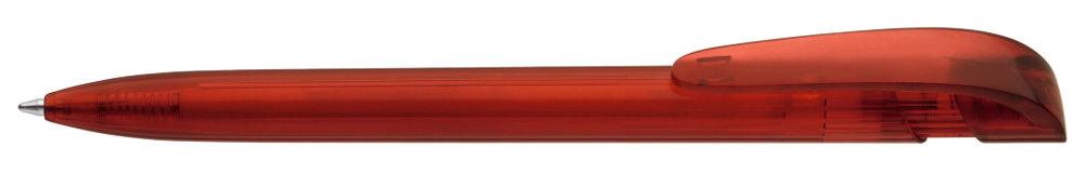 Druckkugelschreiber mit transparent glänzendem Gehäuse und breitem Bogenclipdrücker.