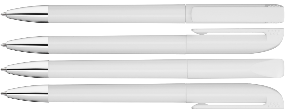 Drehkugelschreiber mit gedeckt glänzendem Gehäuse, matter Clipoberfläche und Spitze glanzverchromt.