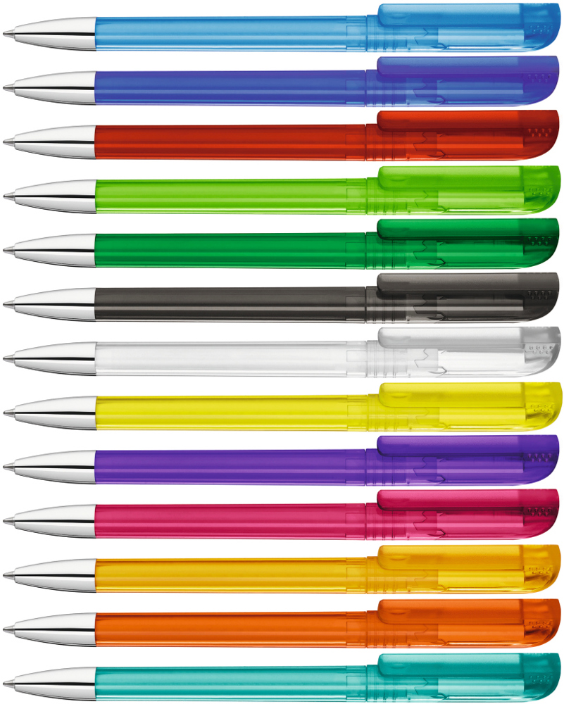 Drehkugelschreiber mit transparent glänzendem Gehäuse, gefrosteter Clipoberfläche und Spitze... mehr