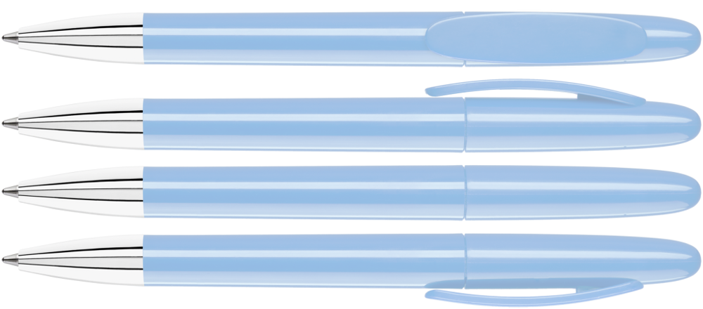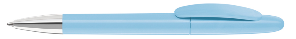 Drehkugelschreiber mit gedeckt glänzendem Gehäuse und Spitze glanzverchromt.