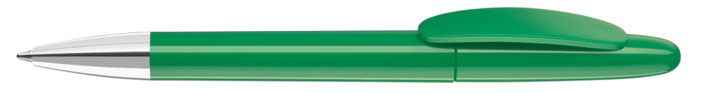 Drehkugelschreiber mit gedeckt glänzendem Gehäuse und Spitze glanzverchromt.