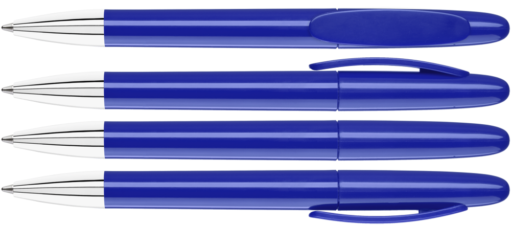 Drehkugelschreiber mit gedeckt glänzendem Gehäuse und Spitze glanzverchromt.