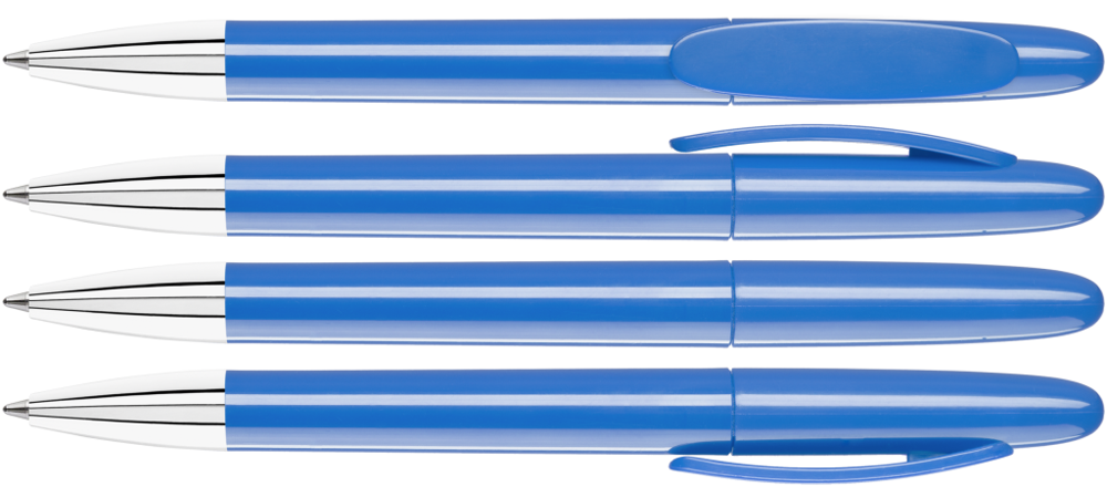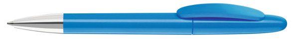 Drehkugelschreiber mit gedeckt glänzendem Gehäuse und Spitze glanzverchromt.