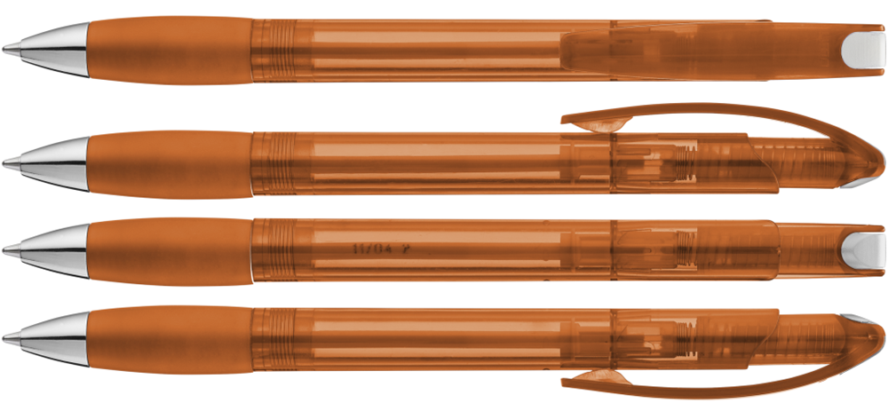 Druckkugelschreiber mit transparent glänzendem Gehäuse, Gummigriffzone und Clipdrücker.... mehr