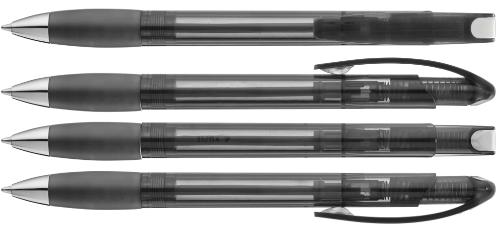 Druckkugelschreiber mit transparent glänzendem Gehäuse, Gummigriffzone und Clipdrücker.... mehr