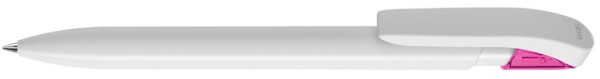 Druckkugelschreiber mit gedeckt glänzendem Gehäuse in uni weiß oder schwarz und farbig... mehr