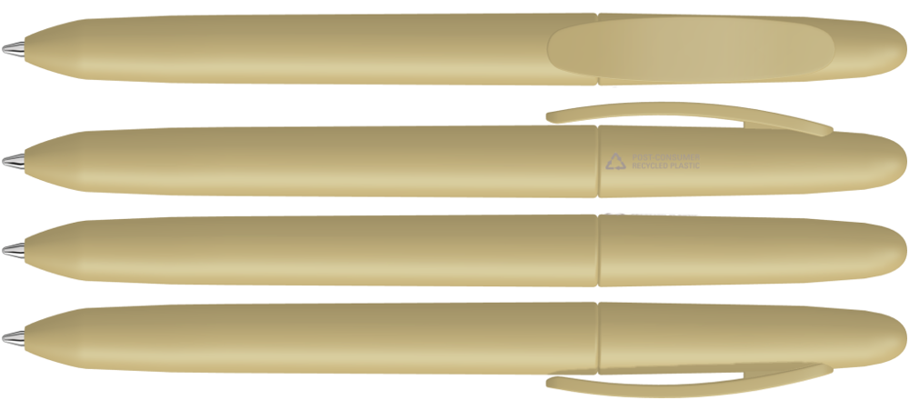 Drehkugelschreiber mit gedeckt mattem Gehäuse aus 100% recyceltem Post-Consumer-Kunststoff.