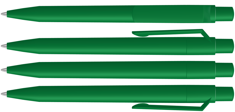 Druckkugelschreiber mit gedeckt mattem Gehäuse, Clip, Drücker und Stopfen. mehr